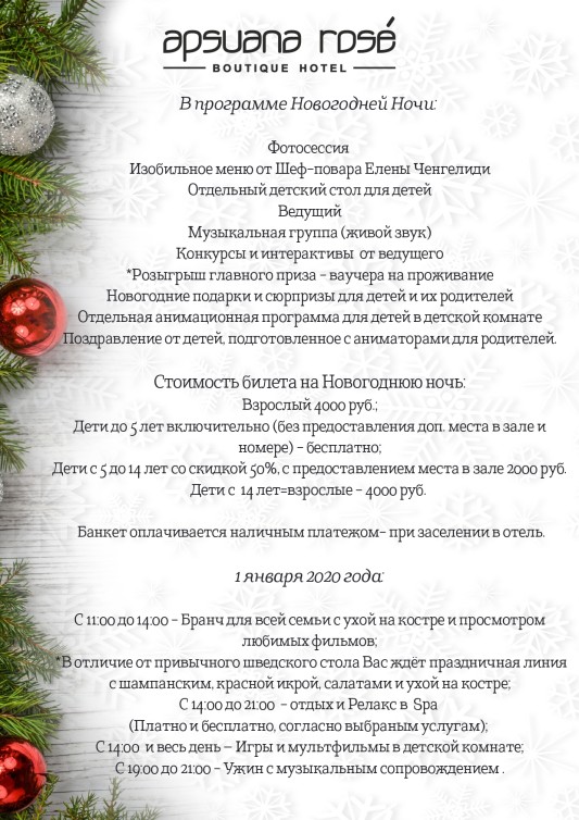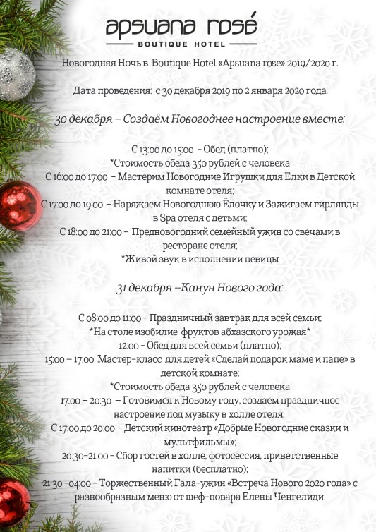 Новый год в бутик-отеле «Апсуана Роуз» Архив