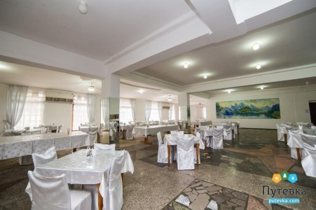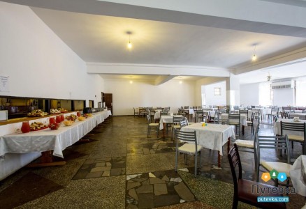 Трёхразовое питание по системе «шведский стол» организовано в столовой пансионата. В меню блюда национальной и европейской кухни, салаты, свежие фрукты, выпечка. Имеются также ресторан, бар и кафе возле моря.