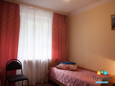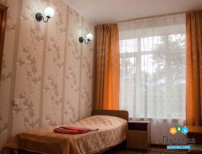 В номере:кровать полутороспальная, вешалка, зеркало, прикроватная тумбочка, стол, стул, шкаф, телевизор, телефон, холодильник, электрочайник.