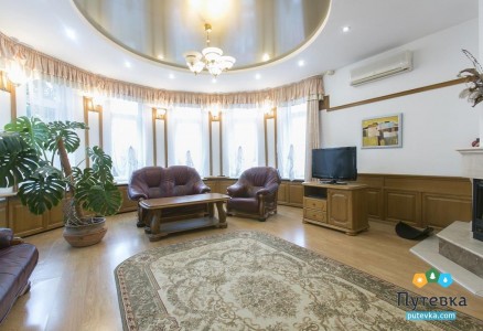 В номере:кровать двуспальная/две односпальные, вешалка, диван, зеркало, мягкий уголок, прикроватные тумбочки, столик журнальный, столик туалетный, шкаф, микроволновая печь, телевизор, телефон, утюг, холодильник, электрочайник, балкон.