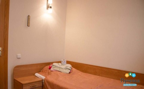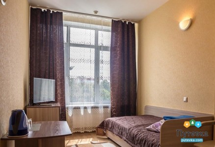 В номере:кровать односпальная, вешалка, диван, зеркало, набор мягкой мебели, прикроватная тумбочка, столик журнальный, шкаф, микроволновая печь, телевизор, телефон, утюг, холодильник, электрочайник.