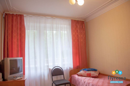 В номере:кровать полутороспальная, вешалка, зеркало, прикроватная тумбочка, стол, стул, шкаф, телевизор, телефон, холодильник.