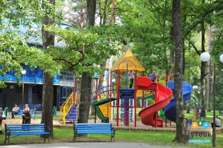 Ну что еще сказать. В санатории приличный бассейн, плавать в нем не получится - только купаться. Посещения - по сеансам, вот эти сеансы нам усиленно предлагали вместо процедур... Там проще всего было увеличить количество людей в единицу времени. Помимо лечащихся в санатории, бассейн на отдельных сеансах посещают дети из лагеря , и сторонние люди из города. Территория, санатория относительно небольшая, но чистая, ухоженная. Некоторую проблему составляют мангалы, разбросанные по территории. Когда кто-то начинает жарить шашлык, дым затягивает в корпус. Раз ночью гуляла какая-то кампания и никто их в 23.00 не остановил.