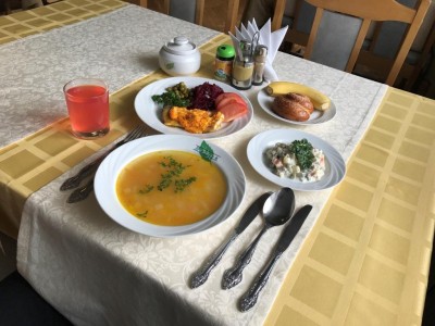 Сначала о плюсах. Это конечно бассейн и безлимитный допуск, правда, вода холодная (25 °), но привыкаешь. Чистая, ухоженная территория прекрасное озеро. По номеру и уборке тоже вопросов нет. По питанию. Готовят вкусно, но выбор небольшой, на гарнира, в основном каши и морковь припушенная. Кто это ест, не знаю. Тарелки с кашами все оставляли полными. Несколько раз отдыхающие видели тараканов. Раз ловили за соседним столиком.