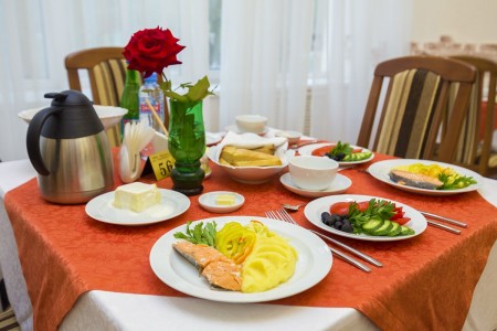 Питание. Еда диетическая, все приготовлено из свежих продуктов. Мясо говядина, хорошие куски (без прожилок, костей и сала), всегда разнообразные блюда, но гречка чаще (немного надоела), фрукты свежие и разные каждый день. Своя сдоба- булочки, очень вкусные Официант, которая нас обслуживала, Лариса Николаевна, замечательный и добревший души человек, заряжает своей энергией. Работает быстро, отвечает всегда вежливо, всегда опрятна и отзывчива. Доброго ей здоровья