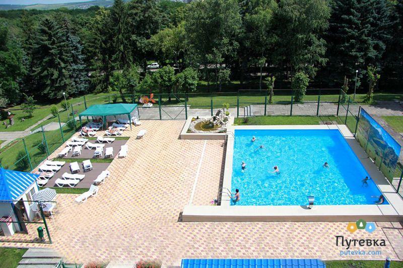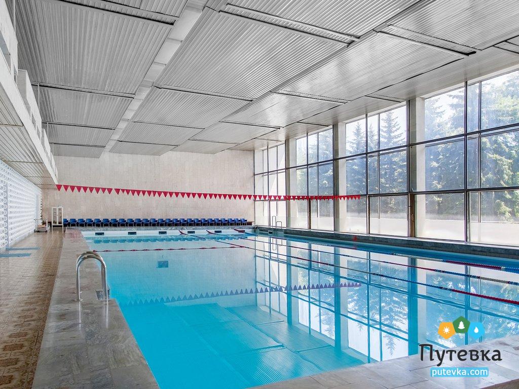 В Жемчужине самый лучший бассейн из всех санаторных:25-метровый!Чистота идеальная, никакого запаха хлора, бассейн разделен на зоны — дорожки есть для пловцов, и также много места для детей и для занимающихся аквааэробикой.Никто лбами не сталкивается. А инструктор на воде просто замечательный! Про лечение не могу ничего сказать, т к не лечилась. Но леч корпус обилием кабинетов впечатляет!(Везде теплые переходы, кстати. Что существенно, если ездишь не летом)