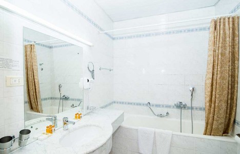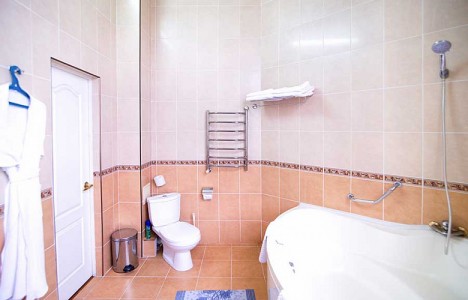 - ванна/душ, туалет, умывальник, биде, фен, туалетные принадлежности, халаты, тапочки.