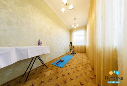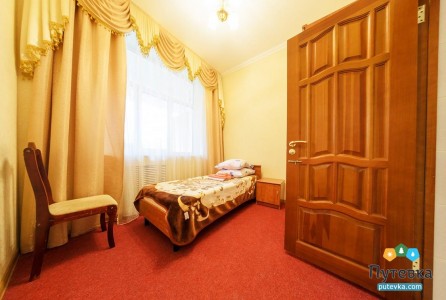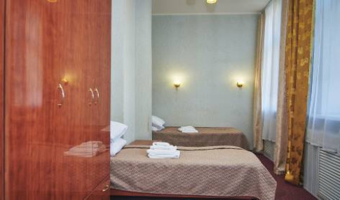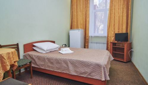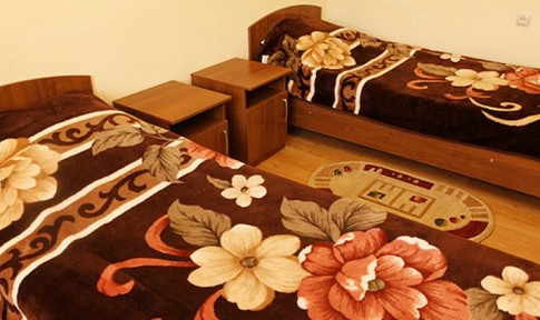 В номере:две кровати, прикроватные тумбочки, стол, стулья, шкаф, телевизор, холодильник, балкон (не во всех номерах).