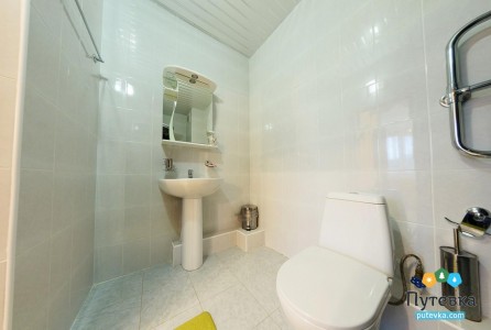 - душ, туалет, умывальник, фен, туалетные принадлежности.