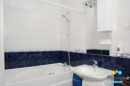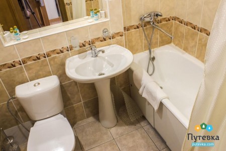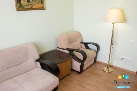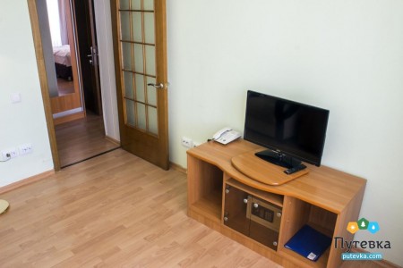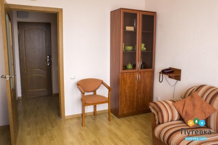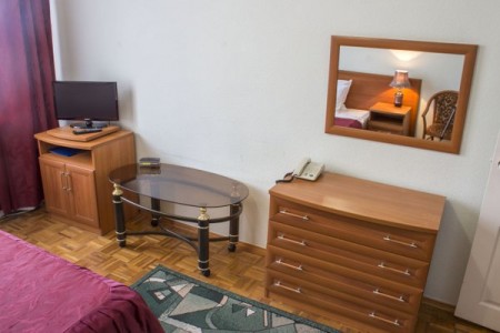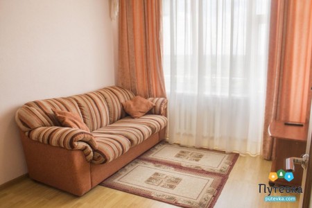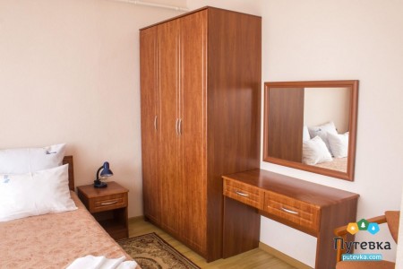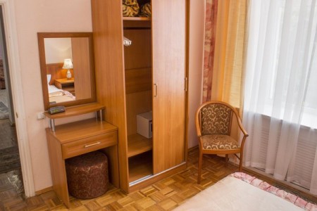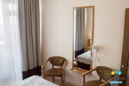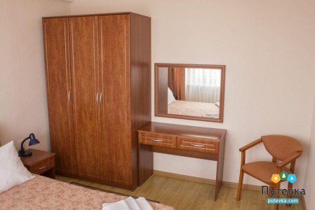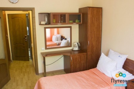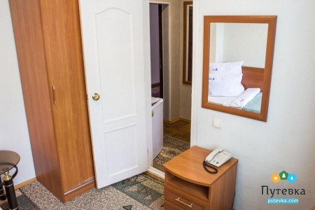 - раскладная кровать (для ребенка до 14 лет), возможно расположение взрослого на дополнительном месте, но в номере будет тесно.