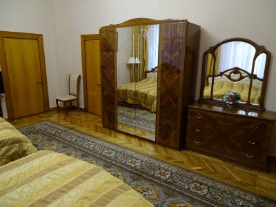В номере:двуспальная кровать или две односпальные, телевизор, холодильник, телефон, электрочайник, кондиционер, сейф.
