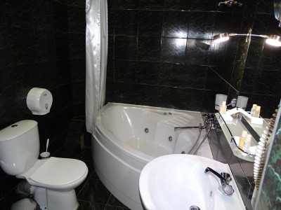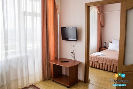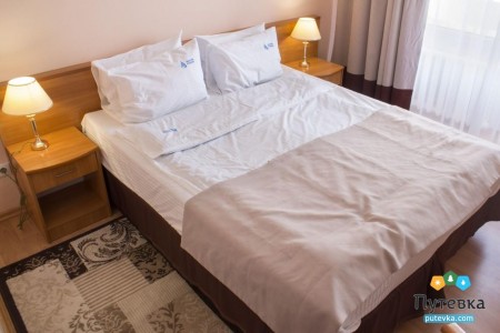 В номере:двуспальная кровать, телевизор, холодильник, телефон, электрочайник, кондиционер, сейф.
