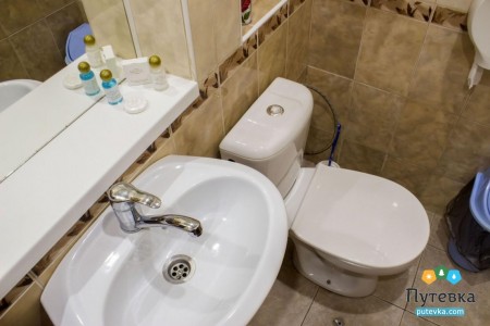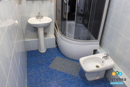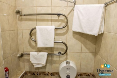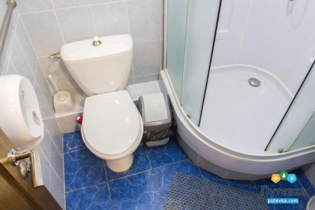 - душ, туалетные принадлежности, полотенца, туалет, умывальник, фен.