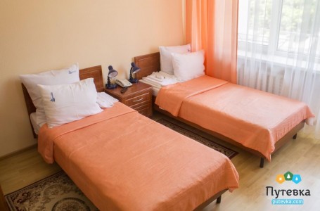 В номере:две односпальные кровати, телевизор, холодильник, электрический чайник, телефон, шкаф/гардероб.