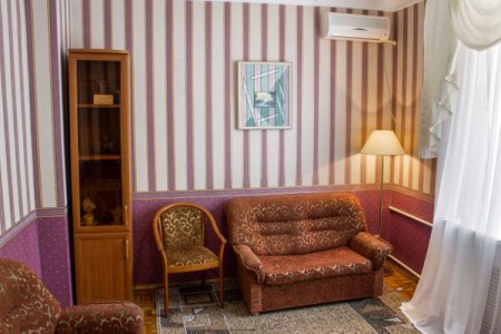 В номере:две двуспальные кровати, телевизор, холодильник, электрический чайник, сейф, телефон, шкаф/гардероб, диван, кресло, гостиный уголок.