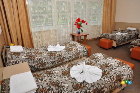 В номере:односпальные кровати, прикроватные тумбочки, стулья, набор мягкой мебели, телевизор, холодильник.