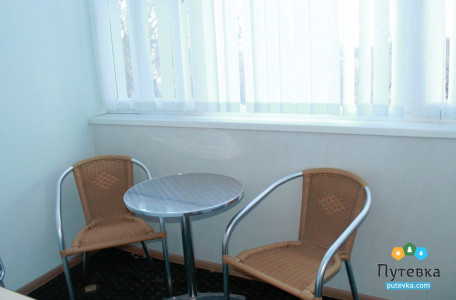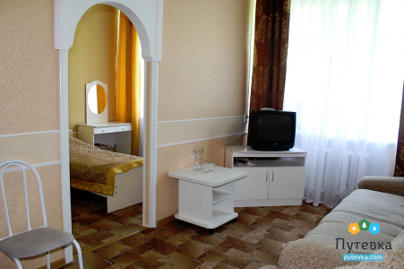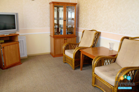 В номере:двуспальная или две односпальные кровати, прикроватные тумбочки, туалетный столик, стул, телевизор, холодильник, кондиционер, электрочайник, набор посуды.