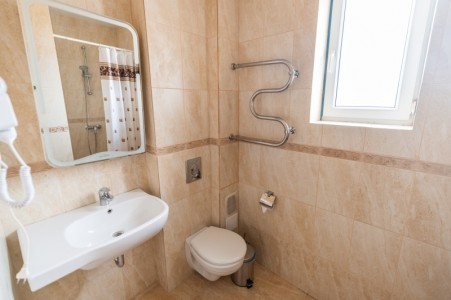 - душ (поддон), туалет, умывальник, фен, туалетные принадлежности.