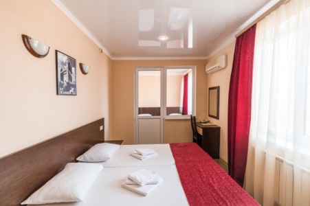 В номере:две односпальные кровати, прикроватные тумбочки, стол, стул, шкаф, сплит-система, телевизор, холодильник.