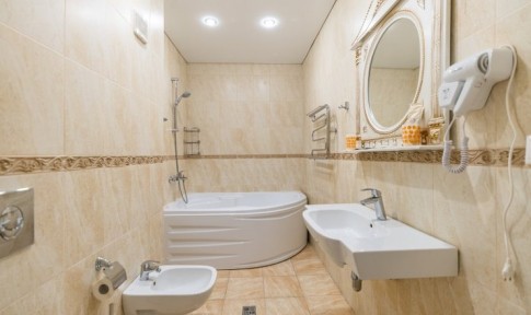 - душ, туалет, умывальник, фен, туалетные принадлежности.