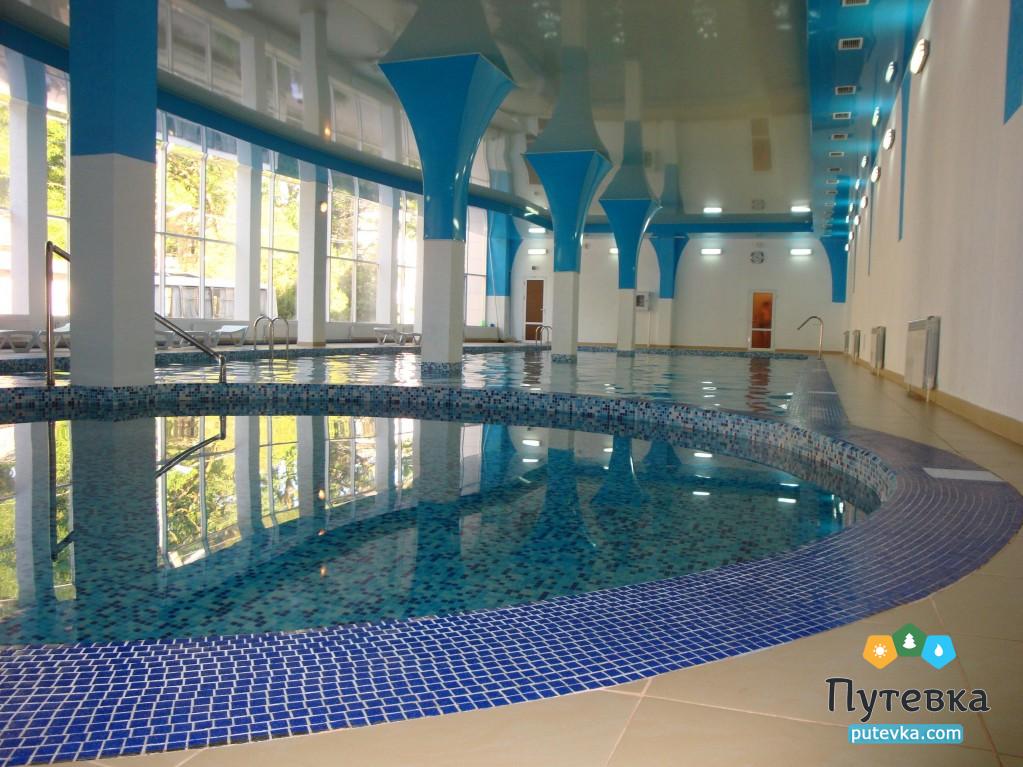Входит в стоимость. Назначается врачом. С морской подогреваемой водой (температура воды 28°), 215 кв. м., размером 23*8,5 метров, максимальная глубина 2,5 м. Бассейн оборудован пологим спуском для людей с ограниченными возможностями. Есть детское отделение. Для посещения бассейна необходимо оформить справку от дерматолога.