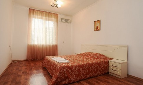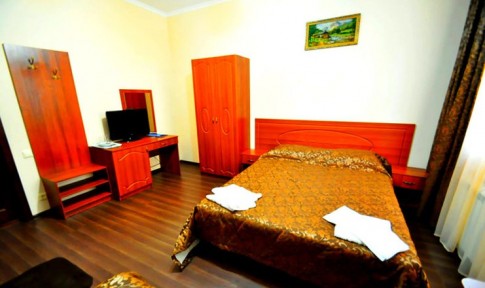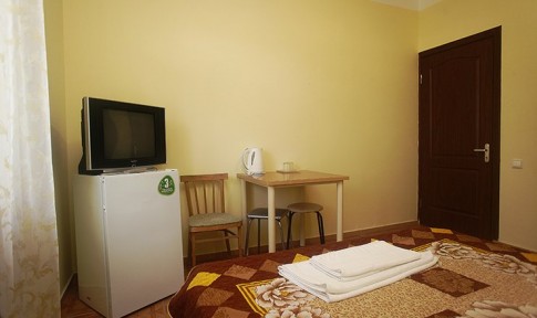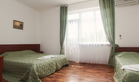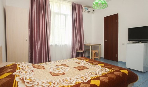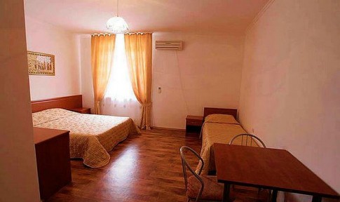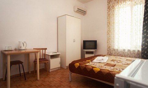 В номере:кровать двуспальная, кровать односпальная, вешалка, зеркало, прикроватные тумбочки, стол, стулья, шкаф, кондиционер, телевизор, холодильник, балкон (не во всех номерах).