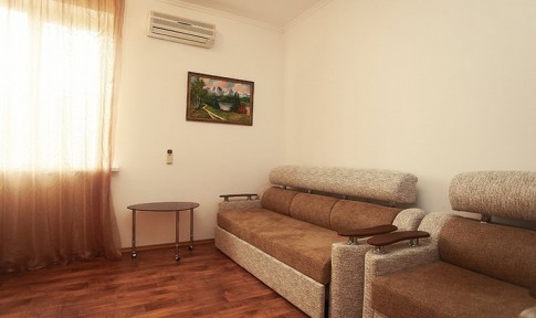 В номере:кровать двуспальная, вешалка, диван, зеркало, кресла, прикроватные тумбочки, стол, шкаф, кондиционер, телевизор, холодильник.