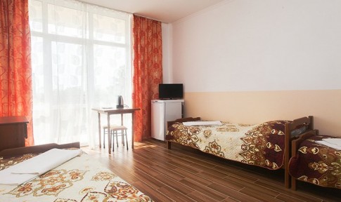 В номере:кровати односпальные: 4, вешалка, зеркало, прикроватные тумбочки, стол, стулья, шкаф, кондиционер, телевизор, холодильник.