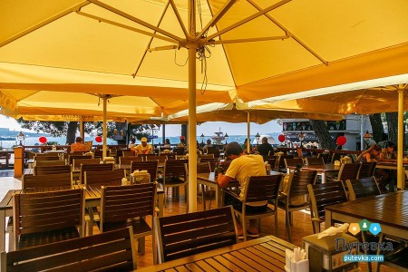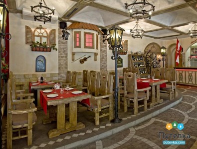 Питание – полный 3-разовый пансион или только завтраки «меню-заказ» или «шведский стол» (блюда молочные, из птицы, рыбы, ассортимент салатов, мясная, фруктовая и овощная нарезка, выпечка). В высокий сезон гости завтракают в местной с толовой «Якорь», а в остальное время – в очень атмосферном ресторане «Венский двор». Для кормления малышей предусмотрены специальные стульчики.