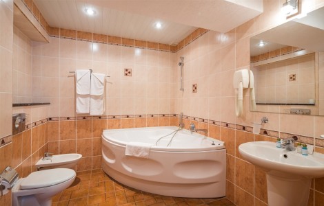 - душ, туалет, умывальник, джакузи, фен, туалетные принадлежности, халаты, тапочки.