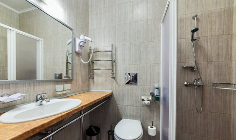 - ванна или душ, туалет, умывальник, фен, туалетные принадлежности, тапочки.