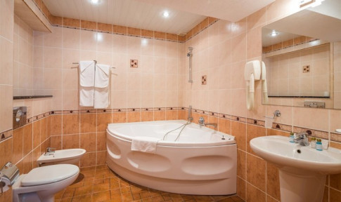 - ванна/душ, туалет, умывальник, джакузи, фен, туалетные принадлежности, халаты, тапочки.