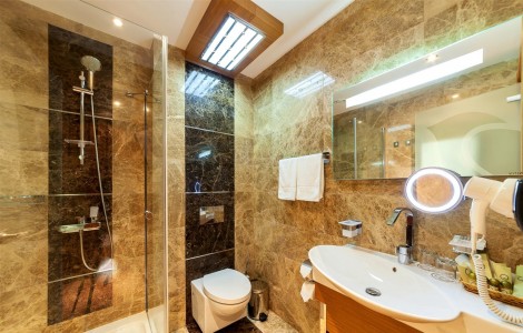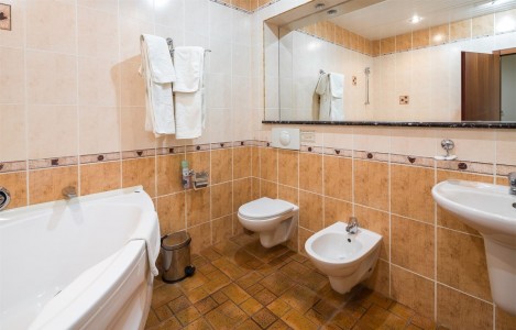 - ванна или душ, туалет, умывальник, биде, фен, туалетные принадлежности, тапочки.