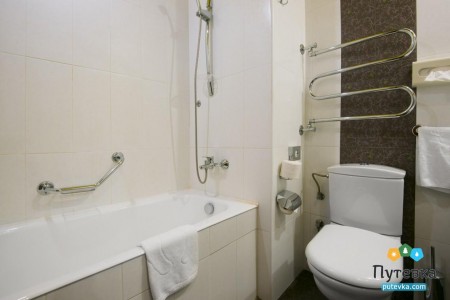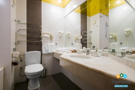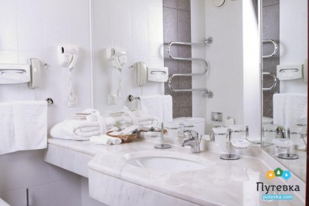 - ванна или душ, туалет, умывальник, фен, туалетные принадлежности, халаты, тапочки.