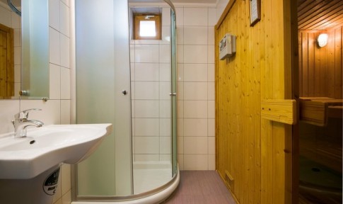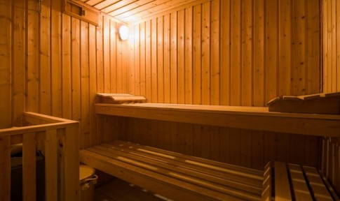 - три санузла, ванна, душ, сауна, туалет, умывальник, фен, халат, тапочки.
