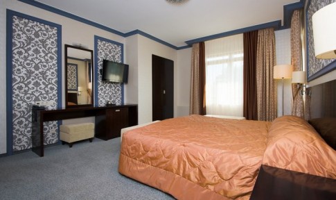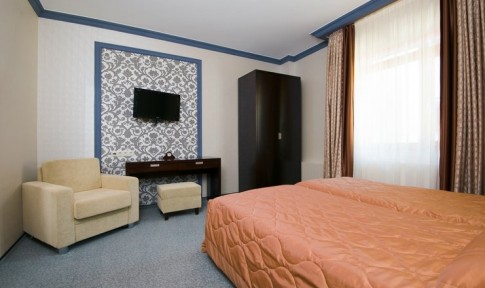В номере:кровати односпальные /одна двуспальная кровать, вешалка, зеркало, прикроватные тумбочки, стол, стул, тумба, шкаф, кондиционер, набор посуды, сейф, телевизор ЖК, телефон, электрочайник, балкон (не во всех номерах).