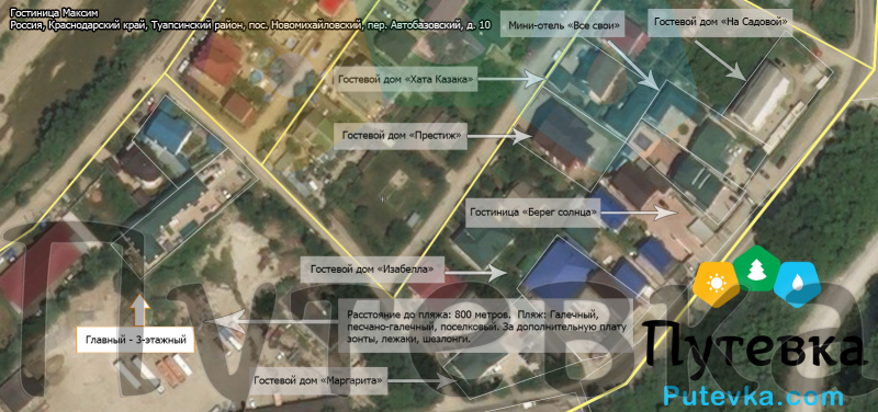 Расположение Гостиницы Максим на карте Краснодарского края