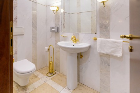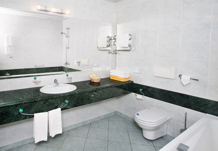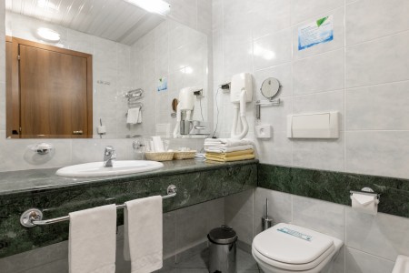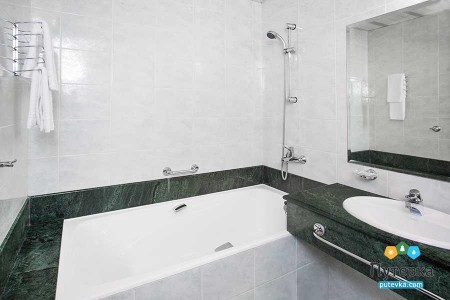 - туалет, умывальник, душ или ванна, фен, халат, тапочки.