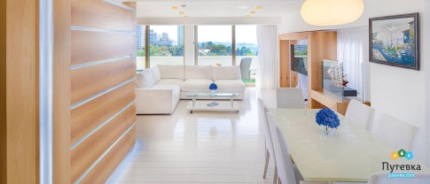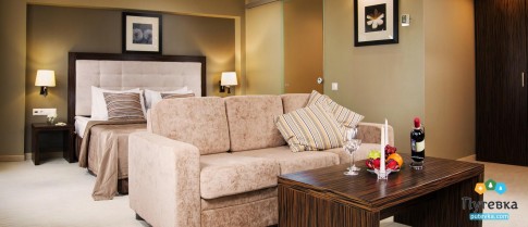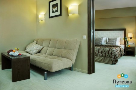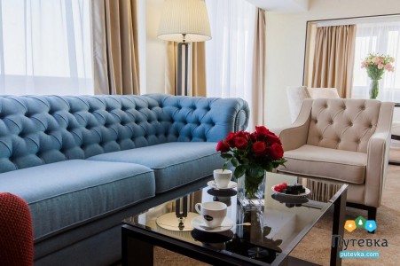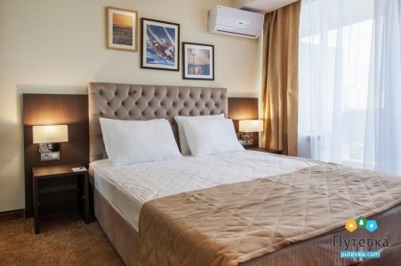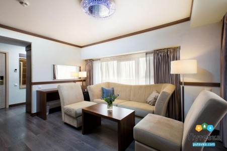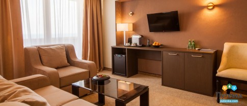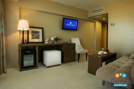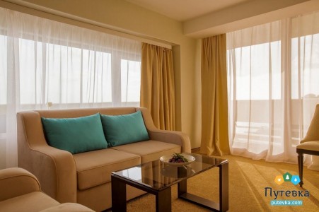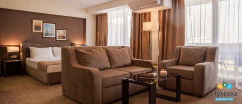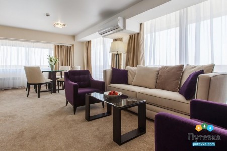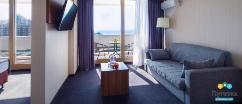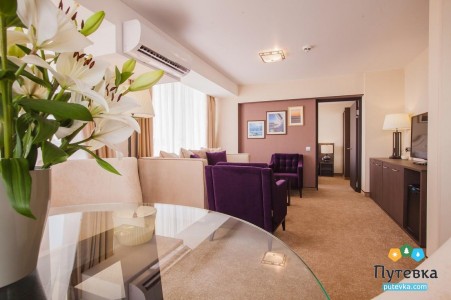 В номере:мини-холодильник, телефон, двуспальная кровать, кондиционер, плазменная панель, индивидуальный сейф, диван, балкон, Wi-Fi.