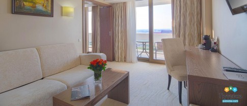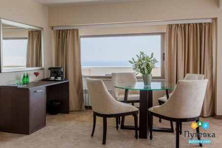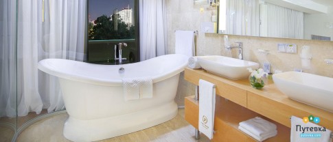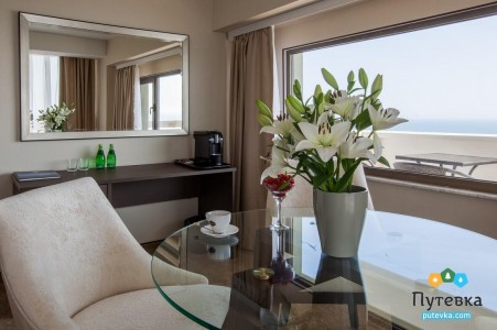 В номере:двуспальная кровать, 2 балкона, мини-холодильник, беспроводной телефон, кондиционер, плазменная панель, индивидуальный сейф, диван, скамейка для багажа.