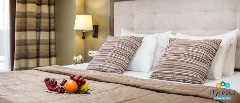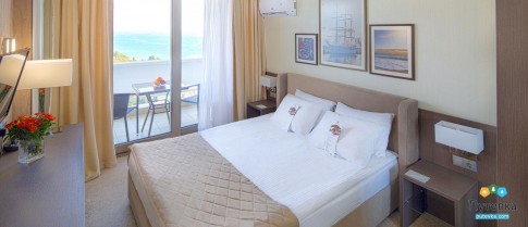 В номере:двуспальная кровать, балкон, мини-холодильник, телефон, кондиционер, плазменная панель, индивидуальный сейф, скамейка для багажа.