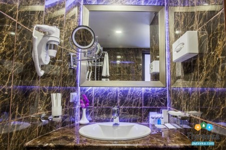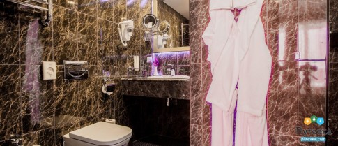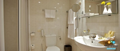 - душ, биде, фен, набор полотенец, халат, тапочки, косметический набор.