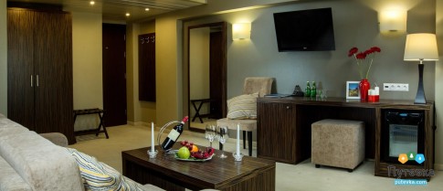 В номере:двуспальная кровать, два балкона, мини-холодильник, беспроводной телефон, кондиционер, два телевизора с плоским экраном, индивидуальный сейф, диван, скамейка для багажа.