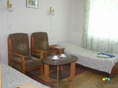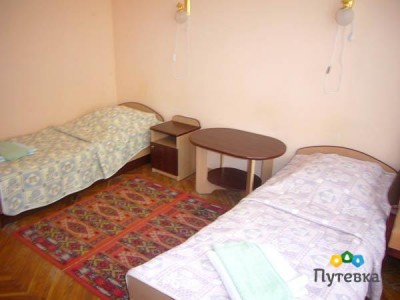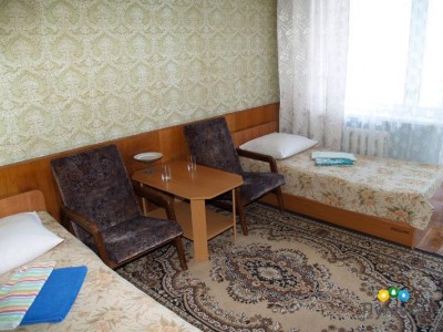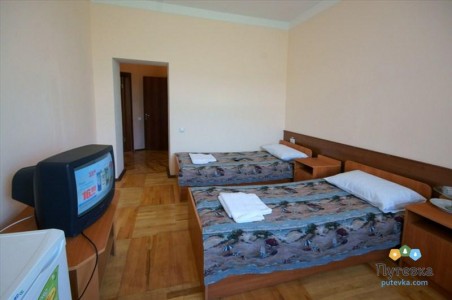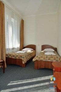 В номере:две односпальные или одна двуспальная кровать, небольшая гостиная зона (кресло), телевизор, холодильник, балкон.