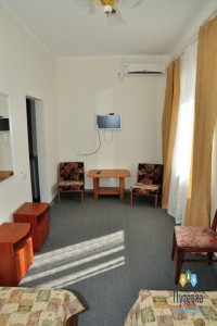 В номере:двуспальная или две односпальных кровати, холодильник, телевизор, кондиционер, диван, кресло, столик журнальный, чайник, набор посуды.