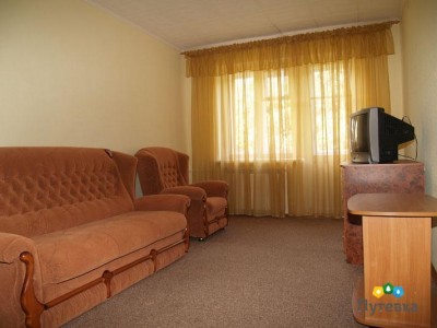 В номере:спальня (две односпальные или одна двуспальная кровать), вторая комната с диваном, гостиная, телевизор, холодильник.