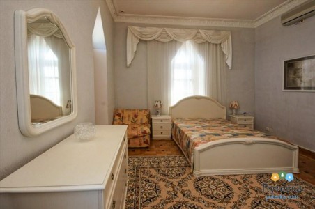 В номере:1 этаж: гостиная с мягкой мебелью, кухня, сауна, сан узел; 2 этаж: 1 спальня с двуспальной кроватью, вторая спальня с двумя раздельными кроватями, сан узел.