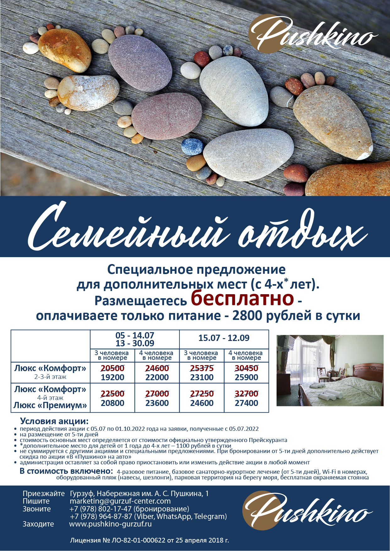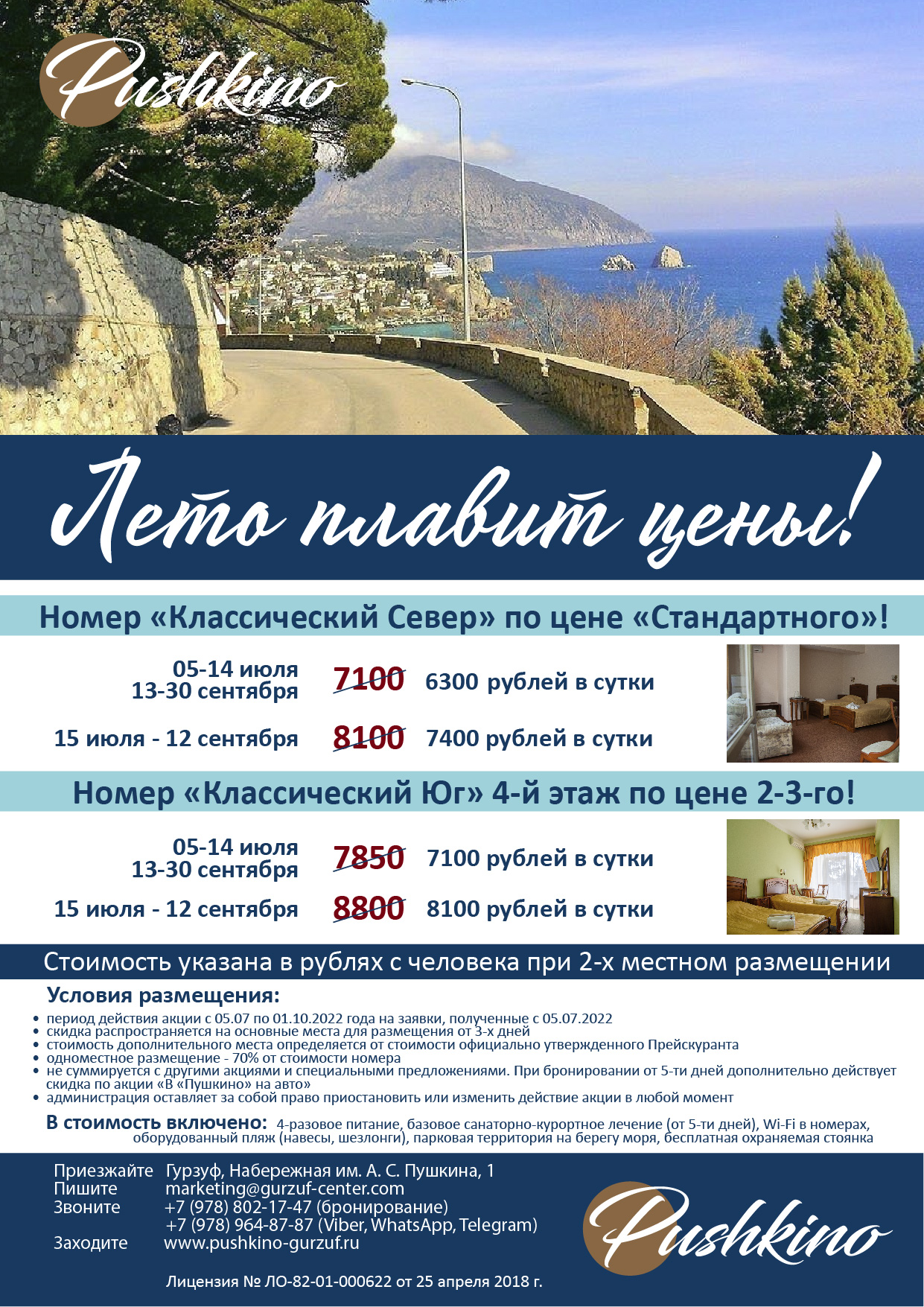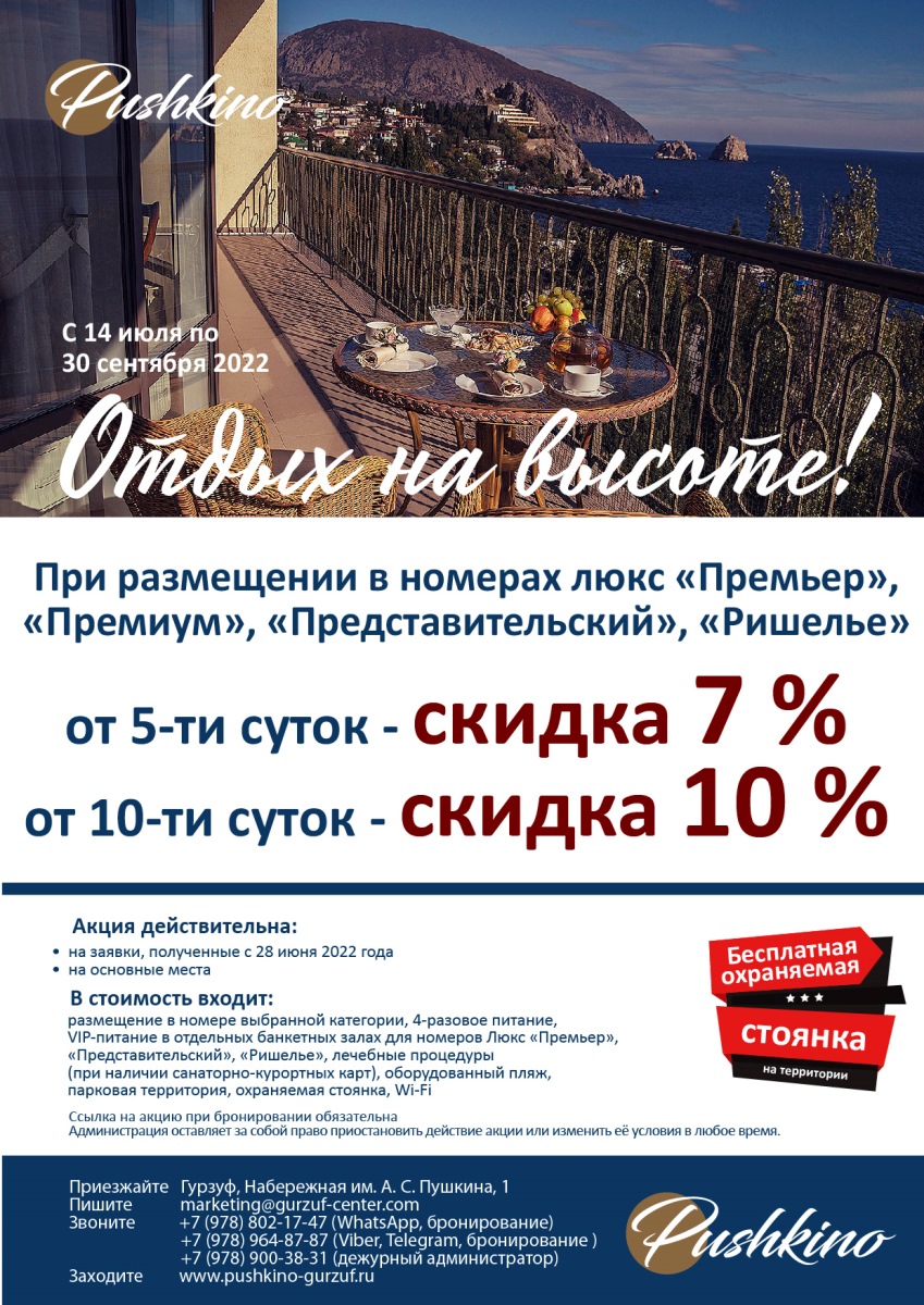 Воспользуйтесь специальным предложением от санатория «Пушкино» и получите скидку 2000 руб. на размещение. Акция действительна на заявки полученные с 20 января 2023 года.