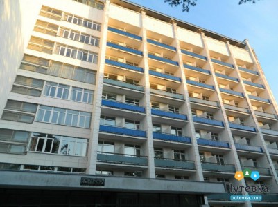 В целом это типовой приличный ведомственный советский санаторий. Точнее половинка, было два корпуса со столовой посередине, соединенные переходами, потом западный кто-то отпилил (в самом прямом смысле, даже переход частично демонтировали), что осталось - это и есть объект. Плюс спортзал и еще что-то. В целом здание достаточно ухоженное, капремонт, судя по лифту (Отис 1996г.) делали 20 дет назад, но про косметический не забывают. У нас был номер на 8 этаже с видом на двор, кровати (или кушетки?) одинарные, довольно удобные, столик со встроенным холодильником и старым корейским ЭЛТ-телевизором, пара тумбочек, пара стульев. В целом мебеля наводят на мысль о советском ДСП и дешевой Икее, но все крепкое, довольно разумно подобранное и ухи не просит. Сантехника работала нормально. Душевая кабина в советском стиле - отсек, выложенный плиткой. Зато просторный. Из окна номера видно и слышно дорогу, но некритично. В номерах на Финский залив дорога вообще не должна быть слышна. Кормежка в точности как в советские времена и даже слегка крикливые особы на раздаче присутствуют ;-) Для отдыхающих столики закрепленные, а для участников мероприятий выделяется один из сегментов немаленькой столовки. В целом неплохой объект для проведения выездных мероприятий человек на 200. Мы как раз и ездили лекцию читать на школе неврологов.