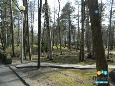 Санаторий, как и весь Зеленогорск, просто утопает в зелени. Санаторий на берегу Финского залива имеет свой пирс и пляж. В санатории свой крытый бассейн 18м (+27 град.С) платный, 1ч в день входит при проживании в коттедже.